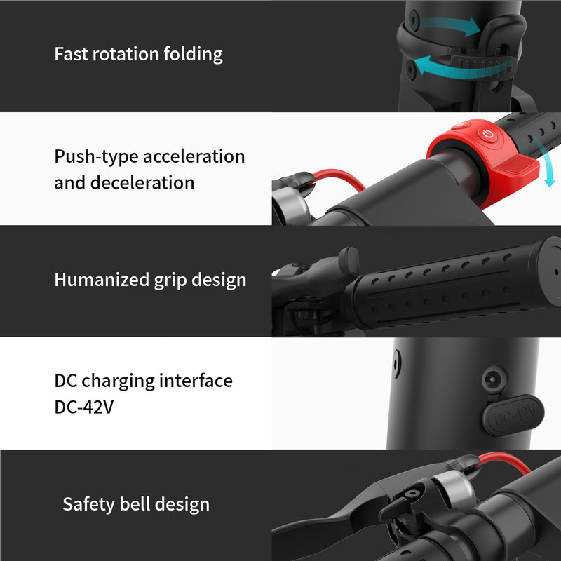 This scooter features a bionic design inspired by the natural curved shape of a cobra, with a minimalist integrated body. The frame is made from durable aluminum-magnesium alloy, welded into a lightweight, sturdy, and portable structure.